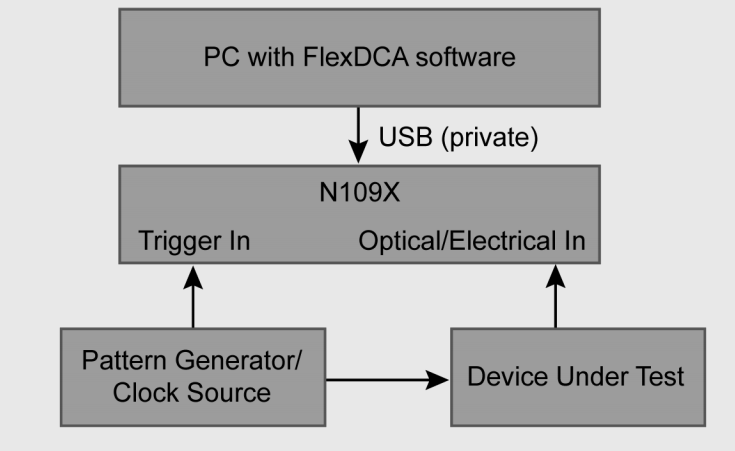 用USB線連接86100D或N1000A主機到N1092A/B/C/D/E。(主機可以通過GPIB或其他方式控制。