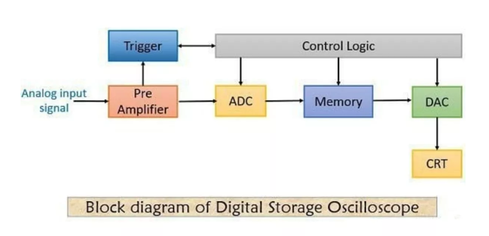 數(shù)字存儲示波器用于存儲和數(shù)字化輸入信號。這是通過使用陰極射線管或CRT并在數(shù)字存儲器的幫助下完成的。數(shù)字化通常通過使用各種周期波形的采樣輸入信號來完成。