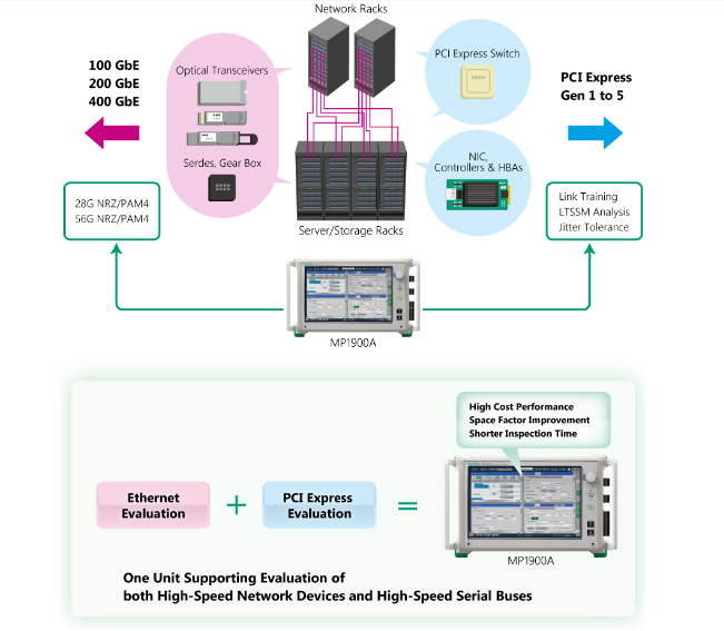 MP1900A支持應(yīng)用:100 GbE / 200 GbE / 400 GbE / 800 GbE,CEI-25G / 28G / 56G / 112G,InfiniBand EDR / HDR,光纖通道,PCI Express Gen1 / 2/3/4/5,Thunderbolt 1/2/3,USB3 .2 / 4 Type C,SAS-3 / -4,DP1.4,光模塊,SERDES,AOC,高速互連。