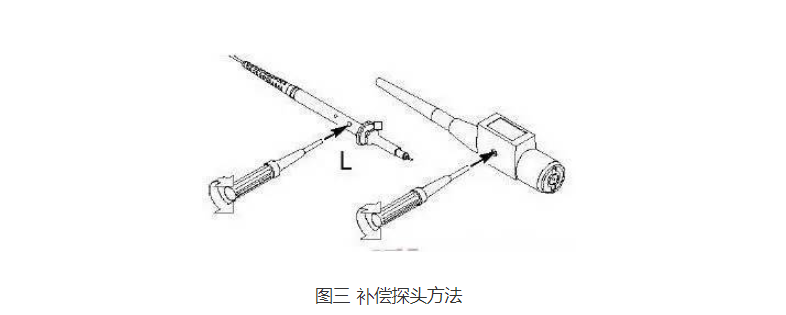 3.如果波形不正確,請調(diào)整探頭。如下圖三所示,直至波形為上面的補償正確波形。