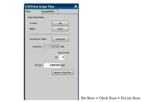 并確認打開 CHB。 在眼圖顯示窗口點擊 Time 打開時鐘方面的相關設置: 確定 Bitrate 和 Divide Ratio。
