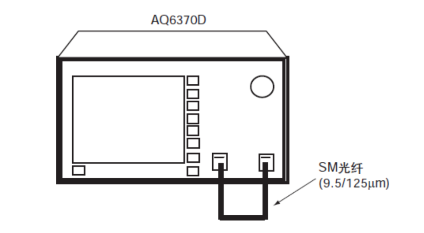 1. AQ6370D 開機(jī)校準(zhǔn),打開電源,FC-FC 接口得光纖將 AQ6370D 得光輸入連接器與光輸出連接器連接起來,如圖所示。