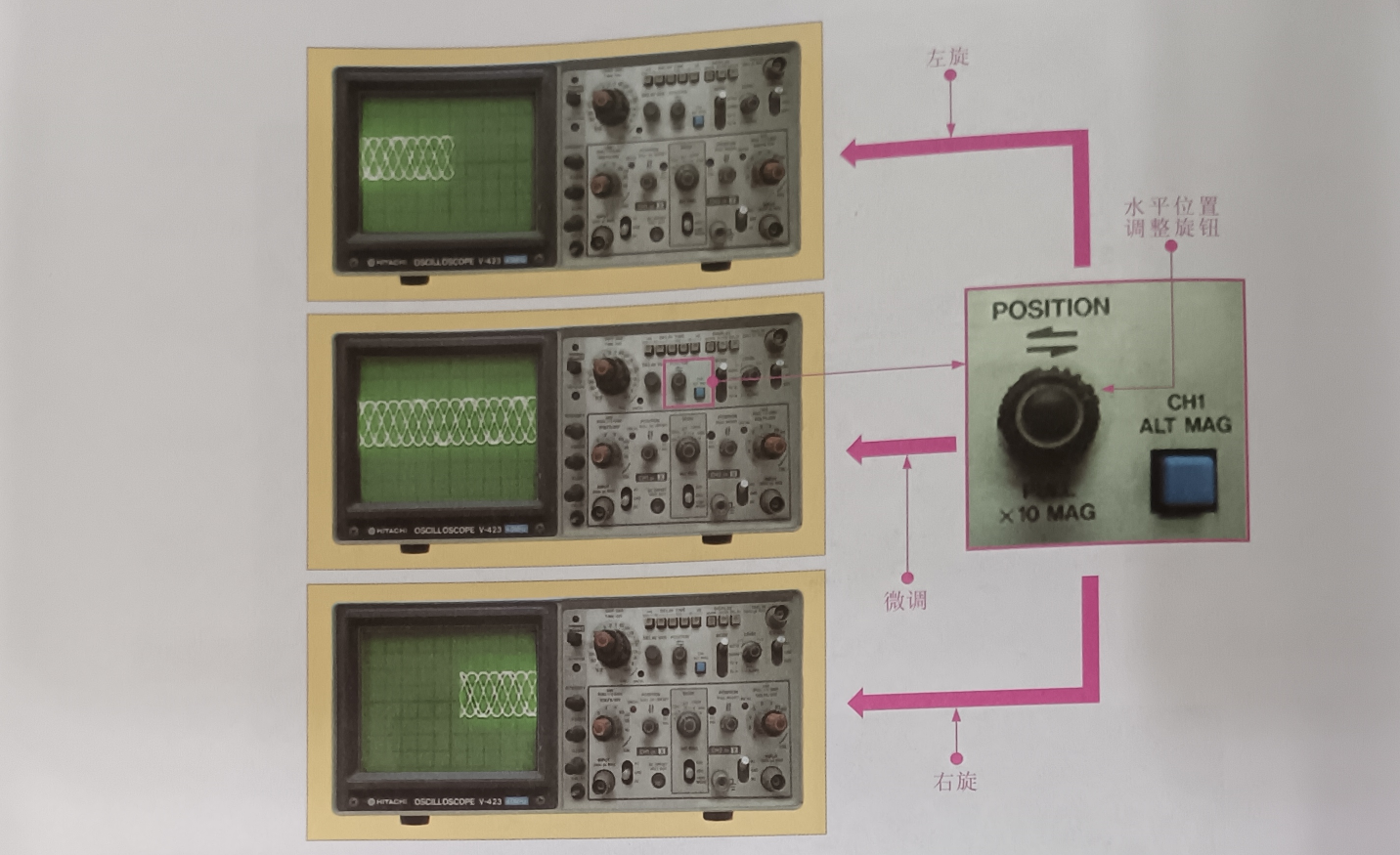 (6)水平位置調(diào)整旋鈕(H POSITION) :用于調(diào)節(jié)掃描線的水平位置,如圖所示。