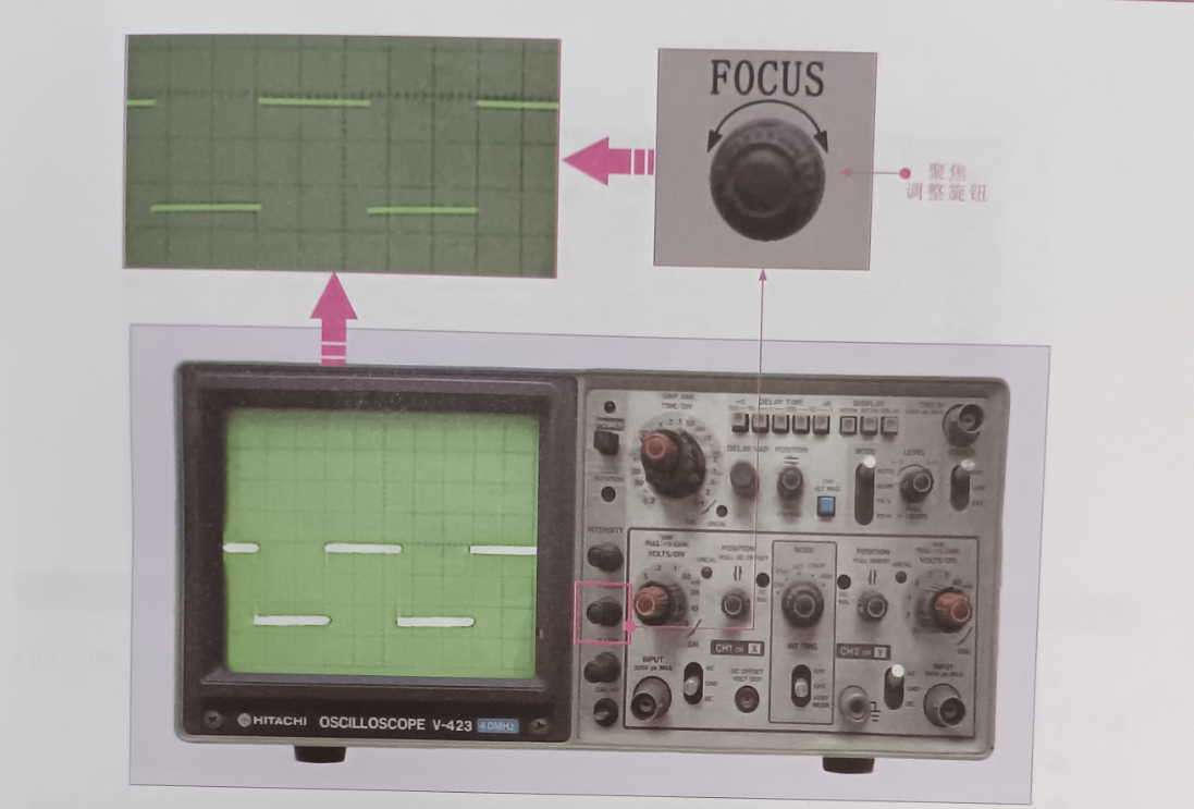 (8) 聚調(diào)整旋鈕(FOCUS) 和掃描線亮度調(diào)節(jié)旋 (ILLUM) : 可調(diào)節(jié)掃描線變得更清晰,如圖所示