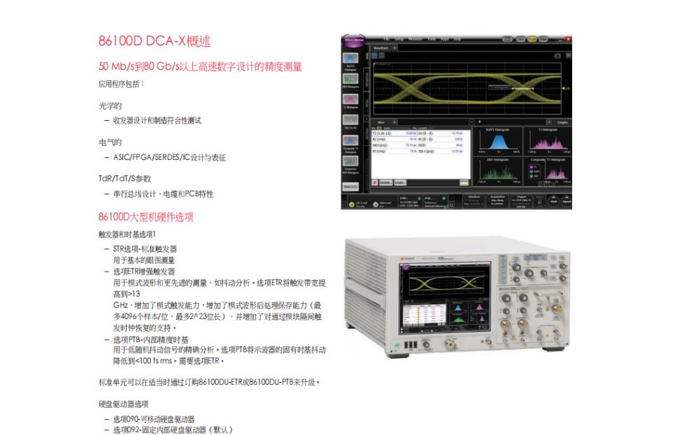 86100D有哪些特點(diǎn)?86100D是一款高性能的寬帶寬示波器,可以精確測量高速數(shù)字設(shè)計的波形特性和質(zhì)量。86100D有以下一些特點(diǎn):