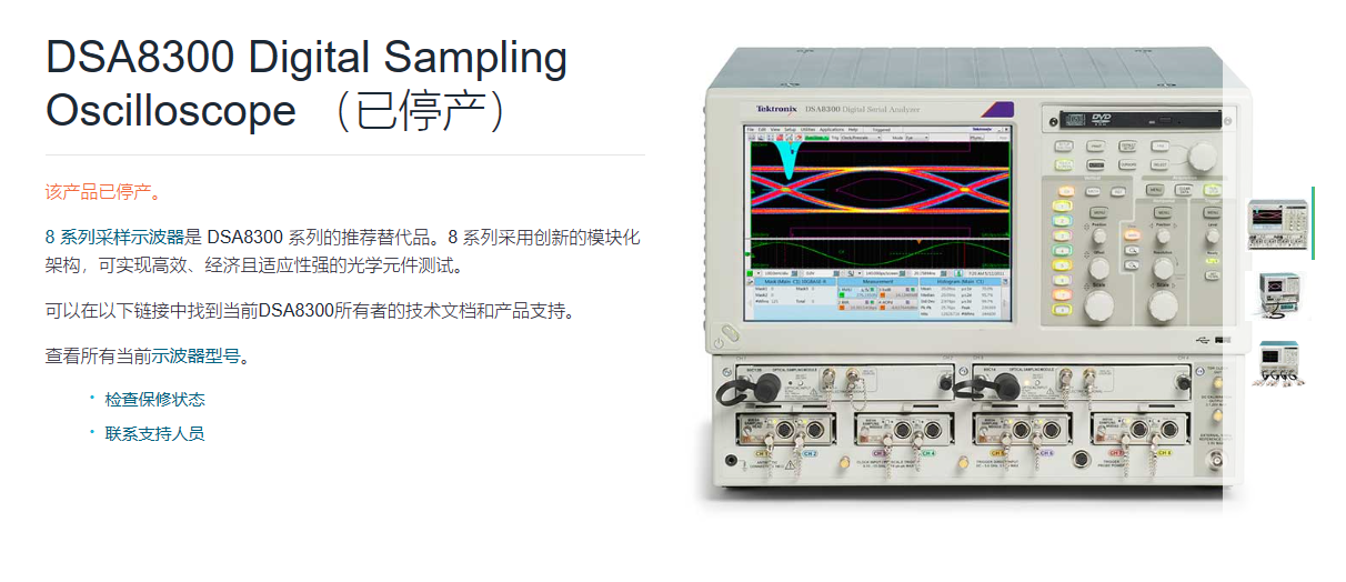 DSA8300 是一款等效時間采樣示波器,為通信信號分 析、串行數(shù)據(jù)網(wǎng)絡(luò)分析以及串行數(shù)據(jù)鏈路分析應(yīng)用提供最高的 保真測量和分析功能。