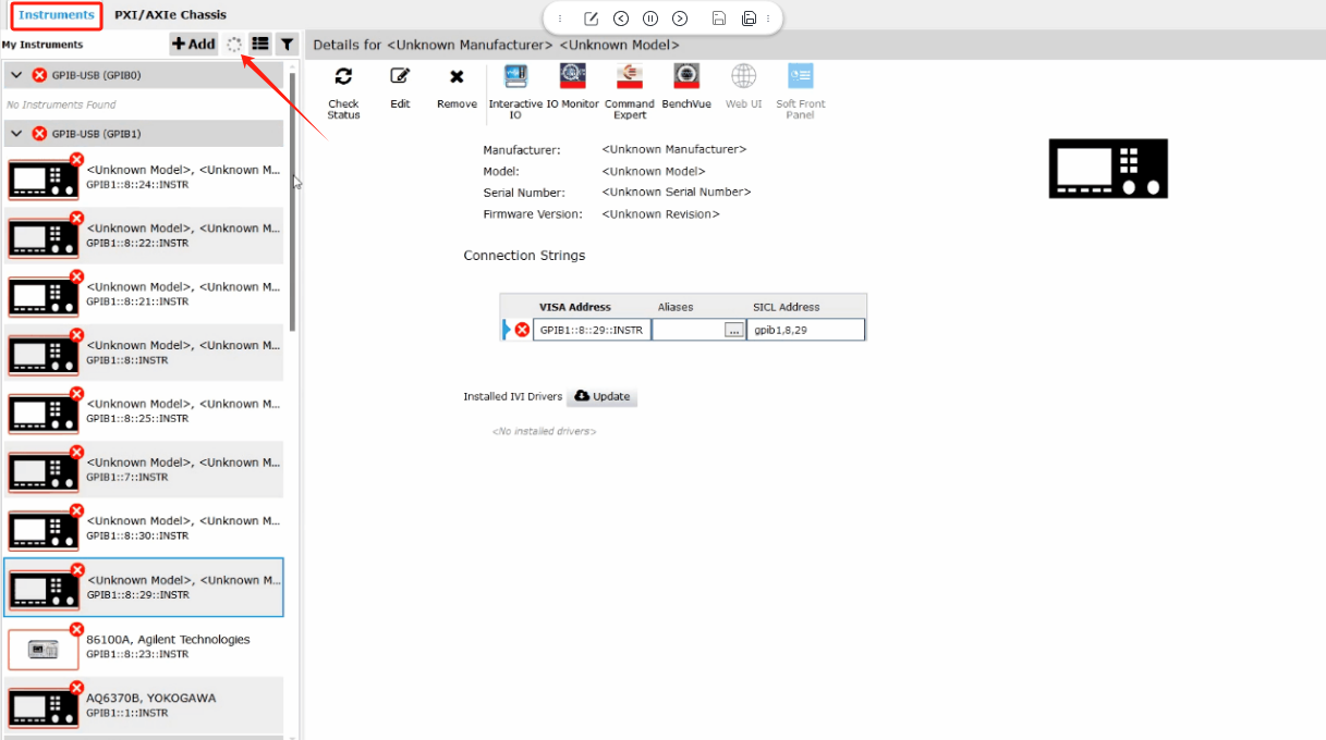 3.打開“FlexDCA軟件”軟件,找到“Instruments”,點(diǎn)擊刷新按鈕即可
