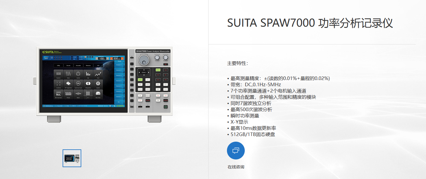 6. SUITA SPAW7000是一款功能強大、精度高的功率分析記錄儀,適合于需要高精度功率測量的應用場景。