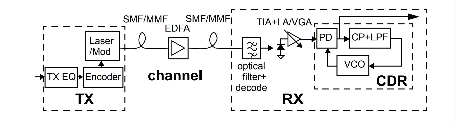 CDR在光通信系統(tǒng)中也扮演著重要角色,它能夠從光信號中提取時鐘信息,進行同步處理,以及去除傳輸過程中的抖動,從而保證數(shù)據(jù)的準(zhǔn)確恢復(fù)。
