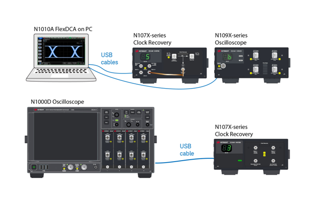 • 在自動測試系統(tǒng)環(huán)境中,通過LAN將主測試系統(tǒng)PC連接至低成本的電腦上,F(xiàn)lexDCA界面駐留在第二臺PC上。然后,第二臺PC通過USB連接至N1092A。