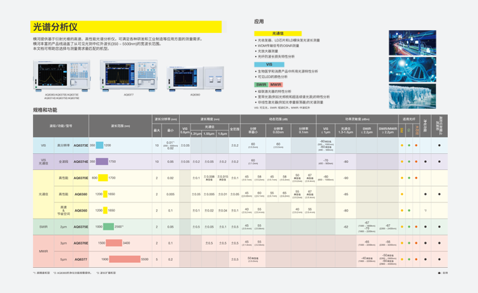 橫河AQ6373E/AQ6373B 光譜分析儀是一款專為可見光波長測量優(yōu)化的高性能光學光譜分析儀。它覆蓋的波長范圍在350 nm至1200 nm之間,具有高分辨率和近距離動態(tài)范圍,適用于醫(yī)療、生物和材料加工等領域的光譜測量需求。
