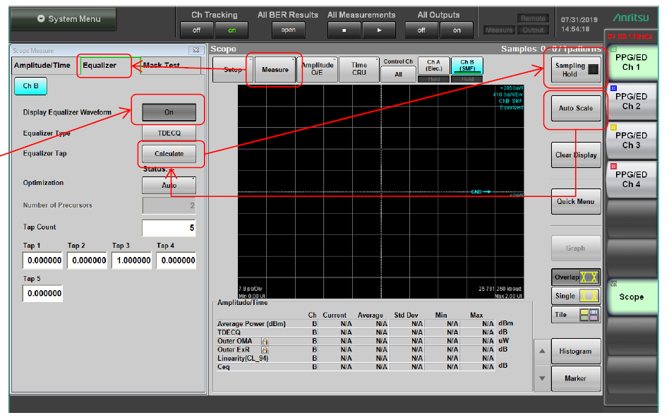 使用 MP2110A 進(jìn)行 TDECQ 測(cè)量步驟。在接入PAM4 和 trigger 信號(hào)后,依照此操作步驟進(jìn)行測(cè)試,TDECQ 測(cè)量步驟參照于 IEEE 802.3cd Final 標(biāo)準(zhǔn)。