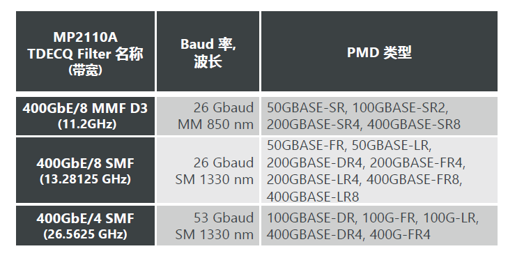 *Variable 長(zhǎng)度不可被選擇用于進(jìn)行 TDECQ 測(cè)試 (使用數(shù)字參考濾波器及TDECQ均衡器)