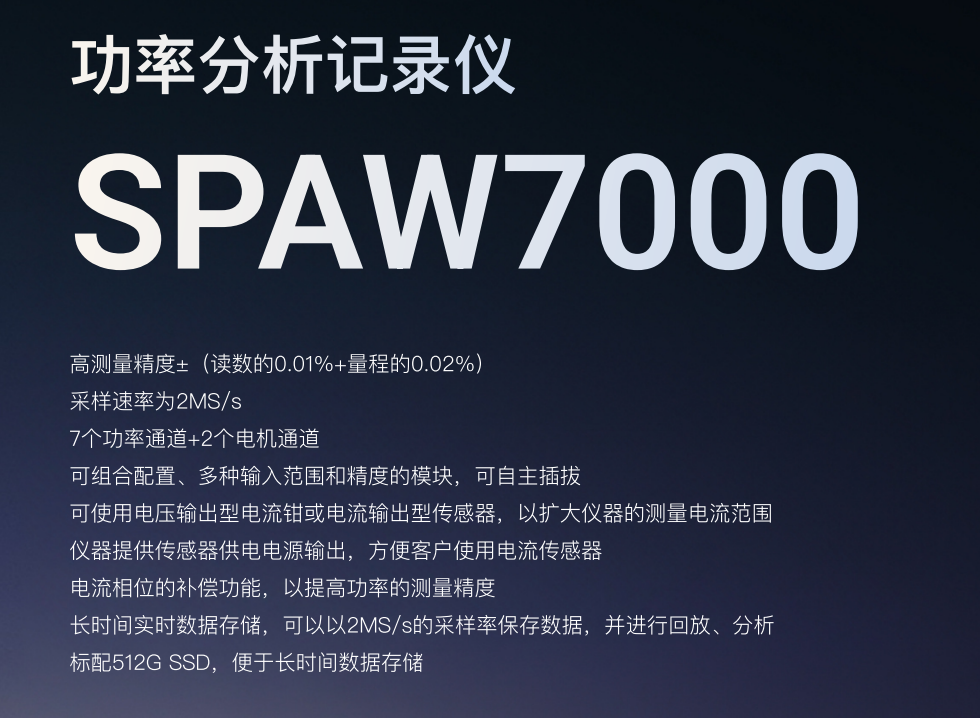 • SPAW7000高精度功率分析記錄儀:用于測量功率、電壓、電流等參數(shù),并進(jìn)行數(shù)據(jù)分析。