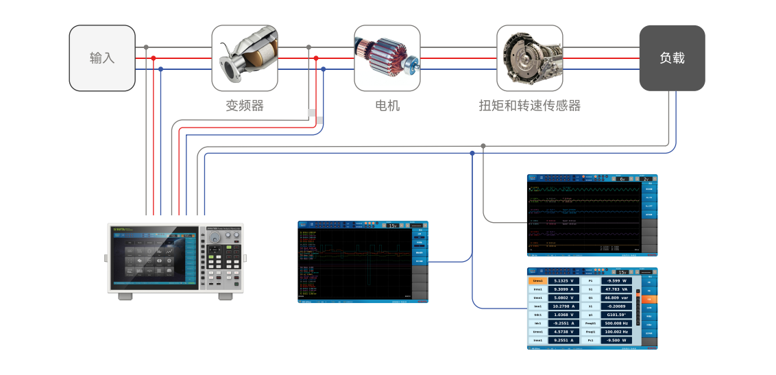 • 測量并分析電機(jī)控制器的輸入與輸出功率。