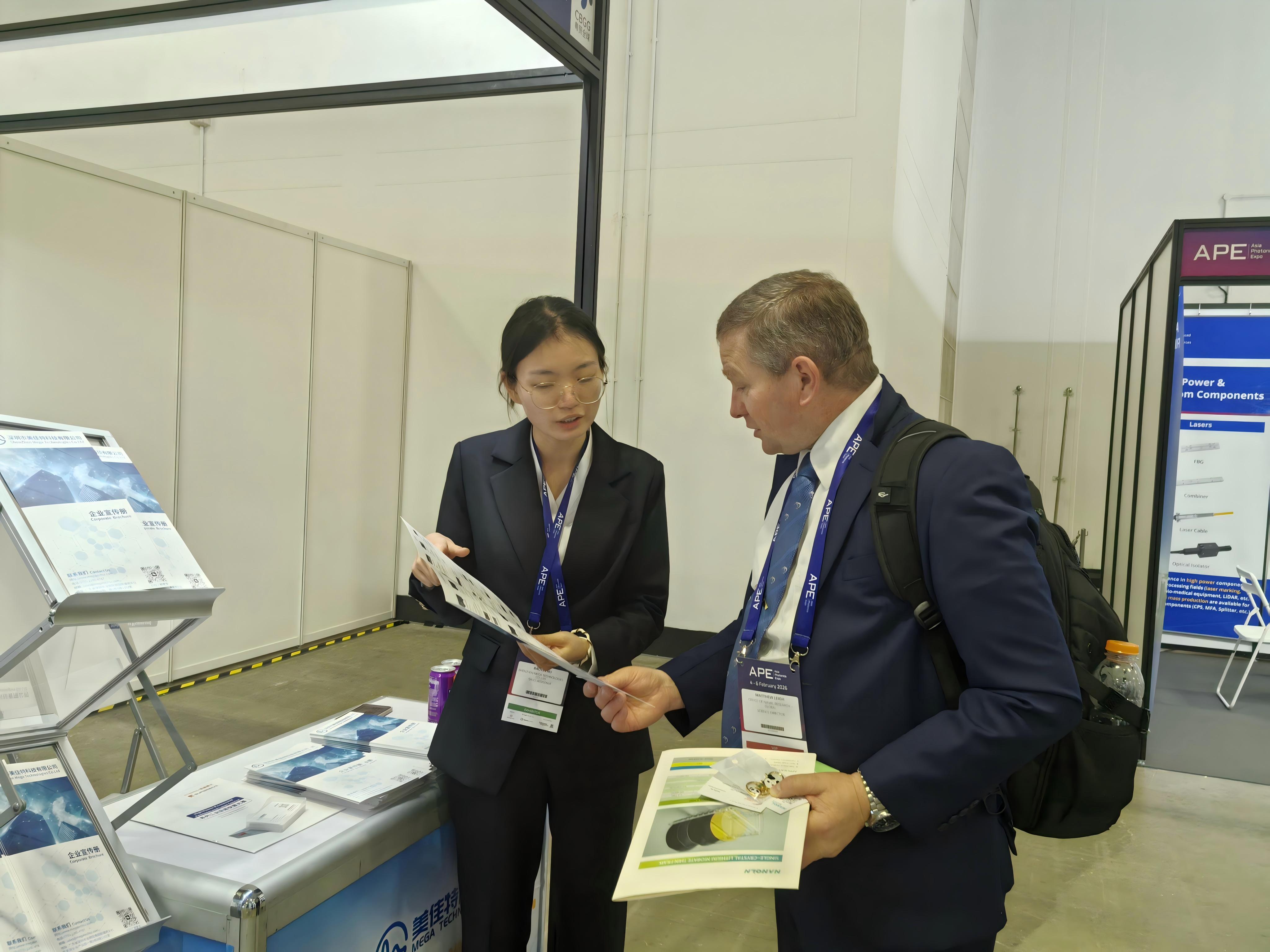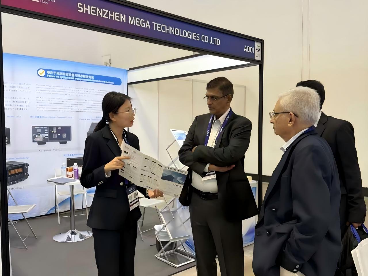 此次展會,深圳美佳特科技(MEGA TECHNOLOGY)如約亮相,以“光芯融合 智領(lǐng)未來”的初心,在L1層A001展位與全球伙伴溫情相聚。步入美佳特展位,簡約大氣的布局搭配科技感十足的視覺設(shè)計,瞬間吸引了眾多參展者的目光,展位前始終客流不斷,不少行業(yè)伙伴主動駐足、上前咨詢,現(xiàn)場交流氛圍熱烈而融洽。技術(shù)顧問們面帶微笑,耐心解答每一個疑問,不時與訪客圍站在展示設(shè)備旁深入探討,用紙筆細(xì)致記錄需求,每一個互動瞬間都彰顯著美佳特的專業(yè)與用心。
