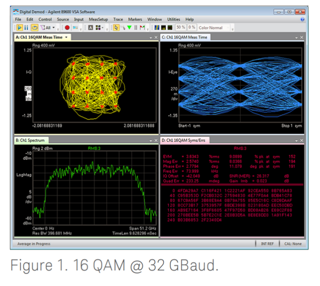 相干光通信--單個 M8195A 模塊可以生成兩個獨立的 I/Q 基帶信號(雙偏振 = 4 通道),波特率達到甚至超過 32 GBaud