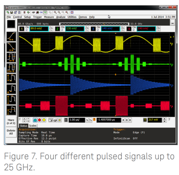 每個 AXIe 模塊配有 25 GHz 模擬帶寬和 2 GSa 存儲器,并可擴展至 16 GSa