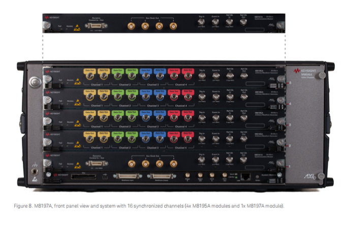 高通道密度:每個模塊提供 1、2 或 4 個通道,使用 M8197A 多通道同步模塊,可以同步 4 個模塊上多達 16 個通道