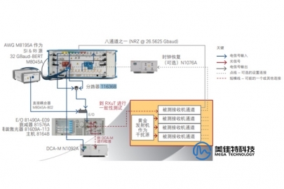 壓力眼測試,是評估25-28G光接收機性能的重要指標,主要是驗證接收端對惡劣信號的容忍程度。這里用到的相關(guān)設(shè)備有:AXIe主機M9502A+M8195A AWG模塊+M9537A內(nèi)置PC控制器,M9505A主機+M8046A高性能誤碼儀+M8045A碼型發(fā)生器,Remote Head M8057A,DCA-M N1092C,8164B光波主機系統(tǒng),里面集成了光源如81608A+81942A參考接收機+81577A衰減器。還有一些小的部件,如合路器,定向耦合器,光纖若干,轉(zhuǎn)接頭若干。