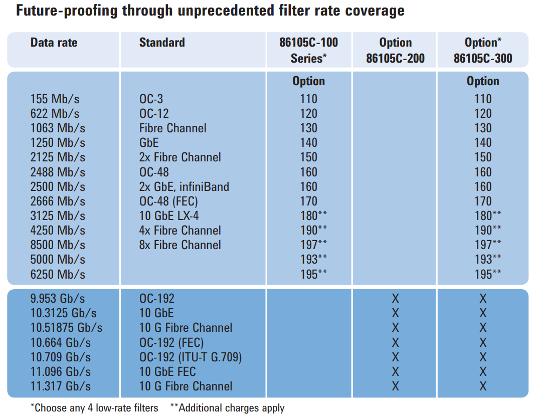 ? ??設(shè)計(jì)適合您應(yīng)用的模塊:四個(gè)低數(shù)據(jù)速率濾波器(選件 100)、多 9G 濾波器(選件 200)的組合,或低數(shù)據(jù)速率濾波器和多 9G 濾波器的組合(選件 300)