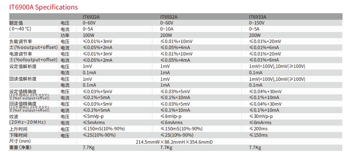 IT6900A系列寬范圍可編程電源內置標準RS232、USB、RS485和模擬量接口(RS485和模擬量接口僅適用于IT6900B系列),支持SCPI協(xié)議,方便遠程控制、工業(yè)PLC控制和組建智能化測試平臺。其遠程補償端子,可避免導線上的壓降引起的測試不精確問題。低漣波、低噪聲以及內置數(shù)字電壓表,方便外部量測。可廣泛應用于 DC-DC 電源模塊、電池充電及傳感器等多種測試領域。